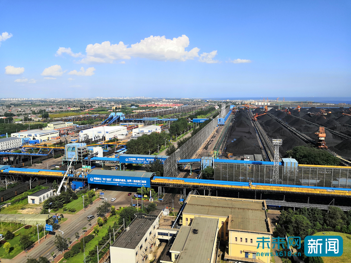 河北秦皇岛柳村南站二场港口,左侧为翻车机作业现场,右侧为卸载的煤炭垛。 未来网记者朱延生 摄